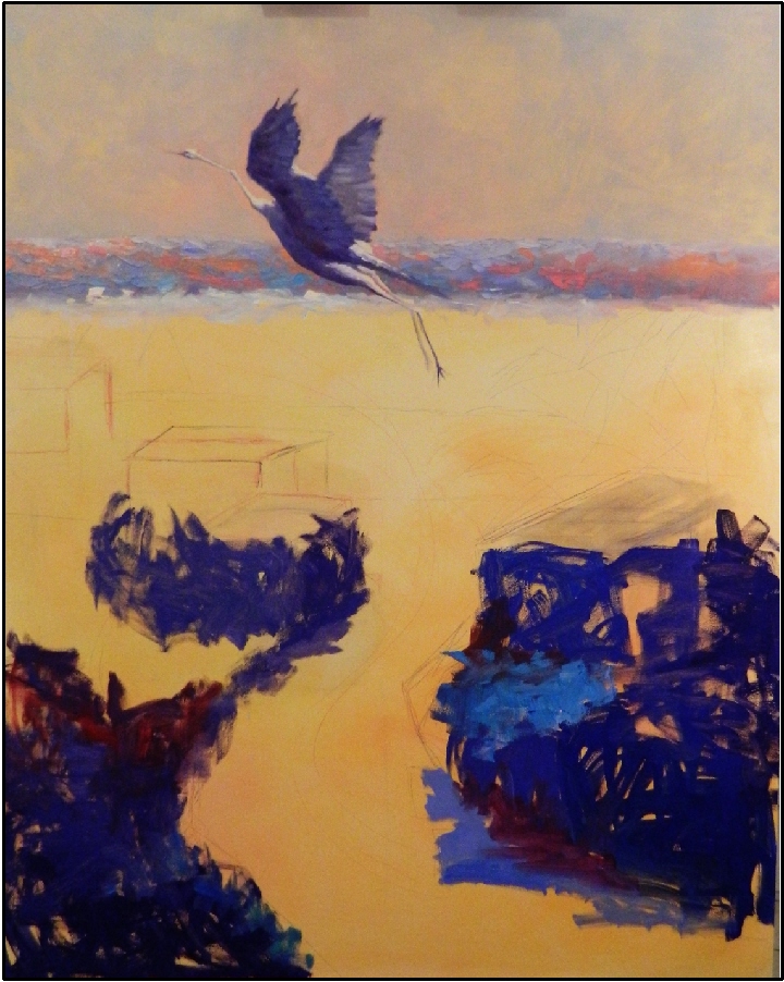 "Just Leaving", 48x60, oil on board by Maryanne Jacobsen (Note: You can click on the image if you wish to see it better.)